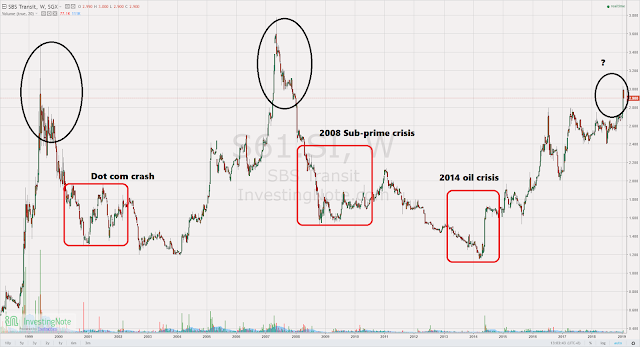Historically, SBS doesn't look to be able to sustain very well looking at its chart history as generally the prices take a long time to recover in the past and it did not recover to its heights before 2008. It looks to be able to rebound better since 2014 oil crisis. I'm not a TA expert, but is that a Head and shoulders forming? However, new industry changes are likely to give SBS transit some room for growth while having some protection from the costs of maintenance due to the new asset light model.